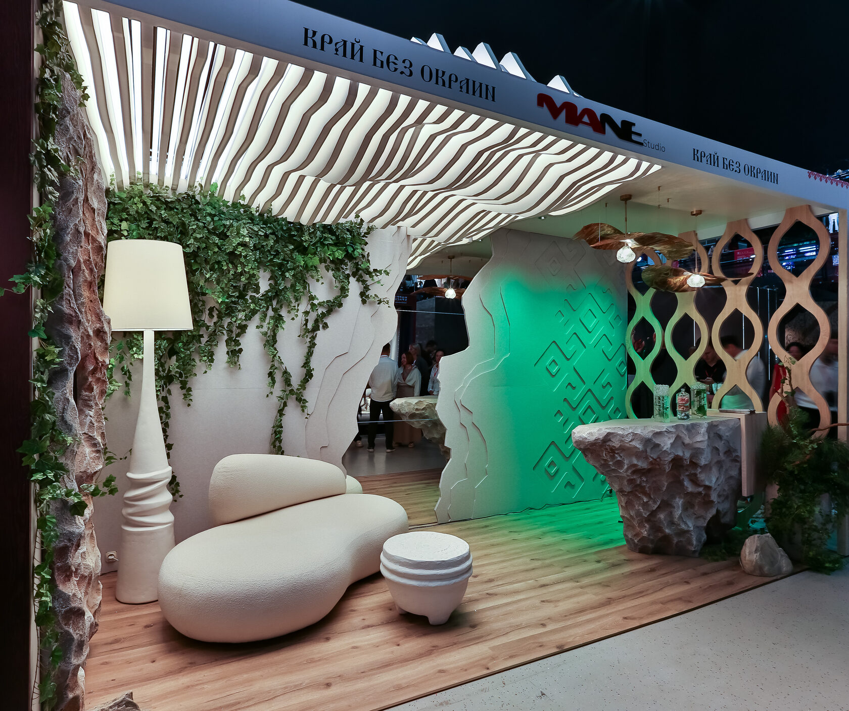 На выставке «Русский Дом» мы приняли участие в создании концептуального пространства — капсулы «Край без окраин», разработанной студией MANE Studio